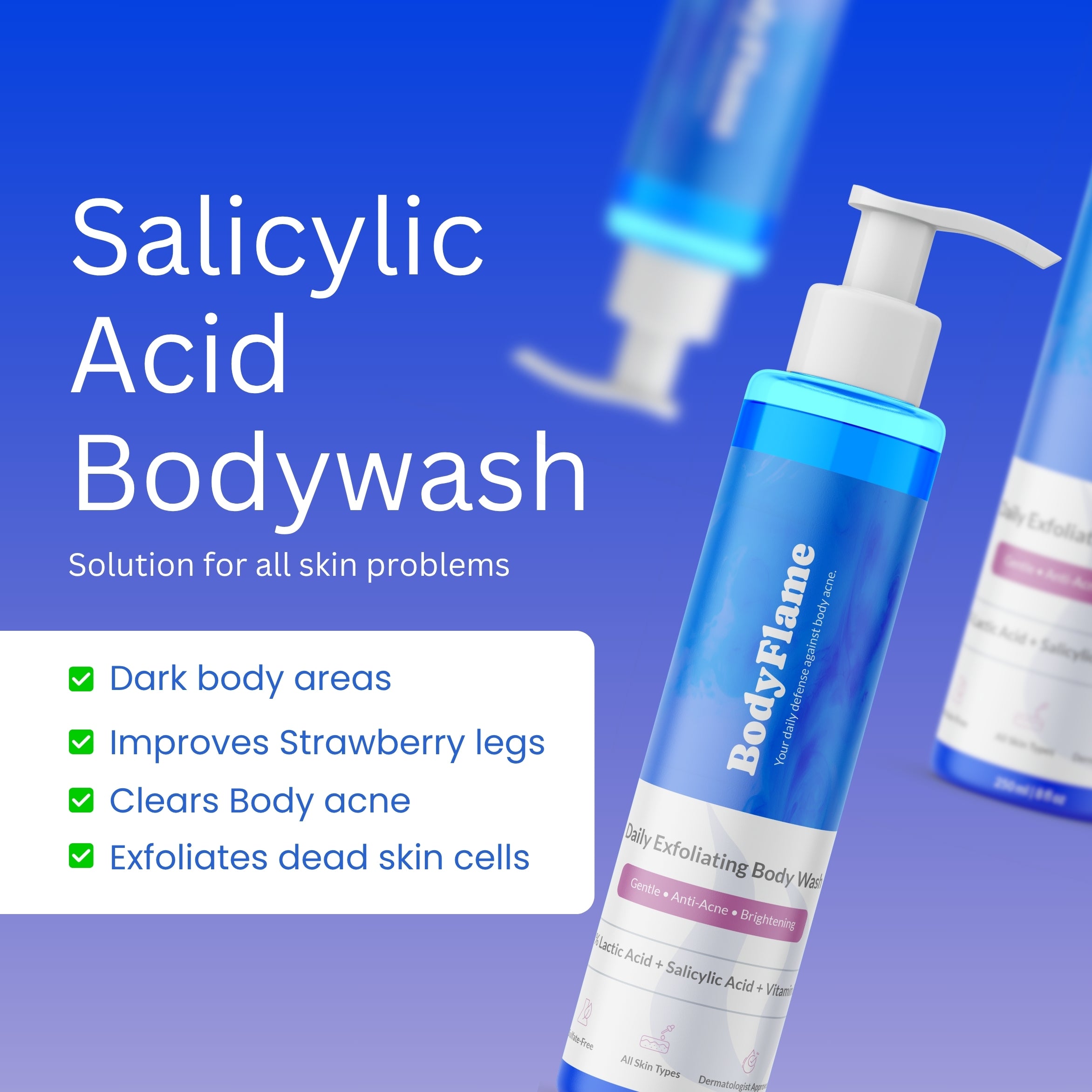 ✅ Yes! Our formula targets body acne, backne, and dark spots with powerful ingredients like salicylic acid and lactic acid perfect for underarms, inner thighs, and other pigmented areas. Expect smoother, clearer skin over time.